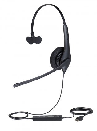 Jabra BIZ 1500 Mono, USB, NC, Global Шумоподавление микрофона, широкополосный звук, гибкая штанга микрофона, USB разъем, модуль управления с кнопками регулировки громкости и mute на шнуре, регулируемое оголовье проводная один динамик Подключение компьютер