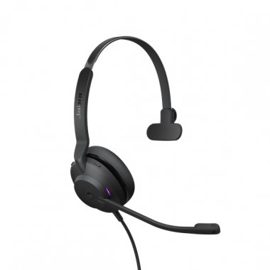 На гарнитуре Jabra Evolve2 30, USB-A, UC Mono [23089-889-979] индикатор занятости при разговоре, два микрофона с шумоподавлением подключение по USB Type A размер динамиков 28-мм.